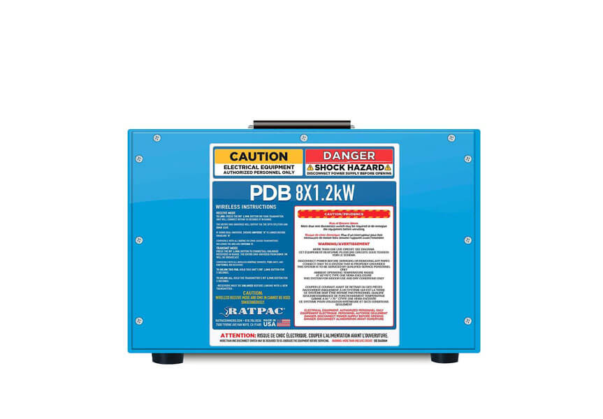 INPUT: 100 A 120 V BATES 50/60 Hz OUTPUT: 120 VAC EDISON/10 A DUPLEX E1016/CANADIAN E1018 CAMLOK AVAILABLE OVERLOAD PROTECTION: 10 A BREAKERS