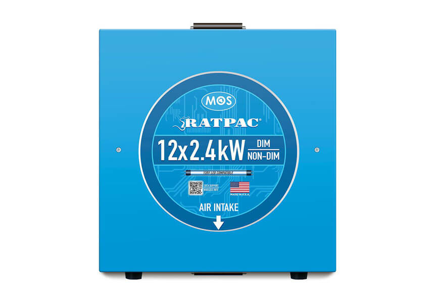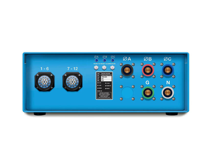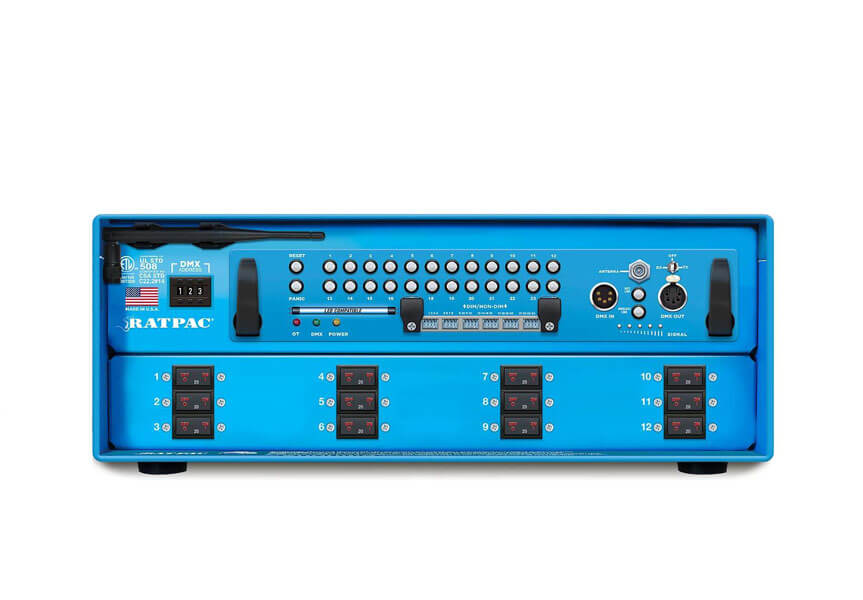 An incandescent dimmer that also dims 120V LED tubes, featuring our newly redesigned 24 channel controller. Tried and true design with over-sized solid state relays and rugged breakers. Equipped with rigging, hoisting points. Simple addressing with no menus. Dim/non-dim option with dip switch selections and bump buttons. Stackable design.