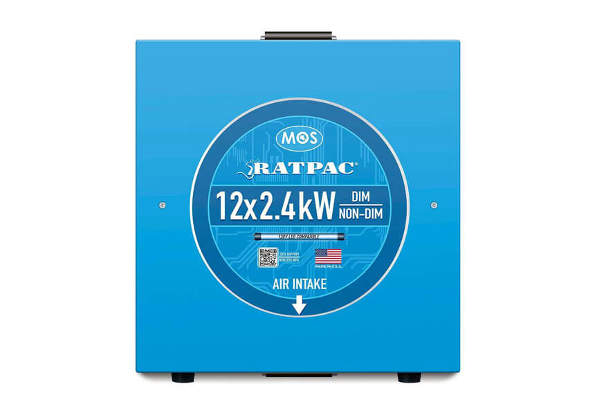 An incandescent dimmer that also dims 120V LED tubes, featuring our newly redesigned 24 channel controller. Tried and true design with over-sized solid state relays and rugged breakers. Equipped with rigging, hoisting points. Simple addressing with no menus. Dim/non-dim option with dip switch selections and bump buttons. Stackable design.