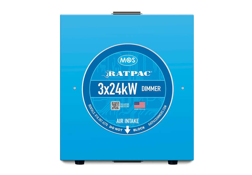 Tried and true design with over-sized solid state relays and rugged breakers. Equipped with rigging, hoisting points. Simple addressing with no menus. Dim/non-dim option with dip switch selections and bump buttons. Stackable design. All RatPac dimmers are ETL/CSA listed, and now include CRMX technology, allowing you control up to a quarter mile range within line of sight. Transmit or receive with the flip of a switch.